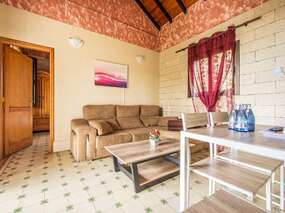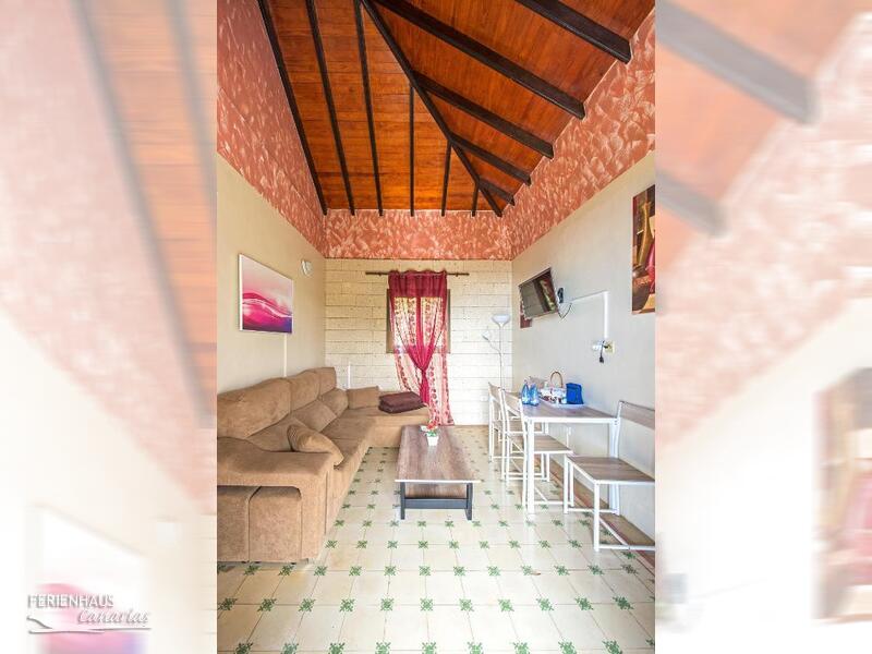 Das hier beschriebene Häuschen ist eine Haushälfte im kanarischen Stil mit zwei Schlafzimmer mit je 2 Betten, einen Wohnraum mit Küchenzeile und ein Bad mit Dusche, Waschbecken und WC. Die Sitzgarnitur im Wohnraum kann als weitere Schlafmöglichkeit genutzt werden. Mit zur Ausstattung gehören auch TV mit internationalen Programmen, WLAN und Heizmögkichkeit.