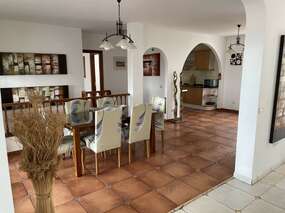 Auch der Grillplatz auf der Terrasse lädt ebenfalls zu gemütlichen Abenden und essen im Freien ein. Der Bereich des Pools verfügt über Sonnenliegen und Sitzmöglichkeiten. Von da aus erreicht man die Schlafzimmer im unteren Stockwerk sowie den Hauswirtschaftsraum. Die Terrasse ist mit einem Tisch und 8 Stühlen ausgestattet und verfügt über eine große Sitzecke mit Tisch.