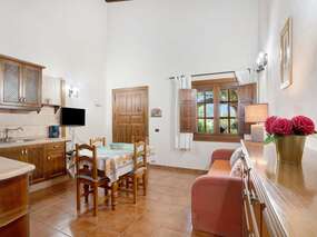 Die Ferienwohnung im kanarischen Stil bietet Platz für bis zu 3 Personen. Es verfügt über einen geräumigen Wohnraum mit Sofa (kann als 3. Bett verwendet werden) und Sat-TV, einem Essbereich sowie eine Einbauküche. Diese ist mit Herd, Backofen, Kühlschrank mit Gefrierfach, Kaffeemaschine und weiteren Kochutensilien komplett ausgestattet. Das Schlafzimmer hat ein Doppelbett sowie einen Kleiderschrank und das Badezimmer ist mit Dusche, Waschbecken und WC ausgestattet.