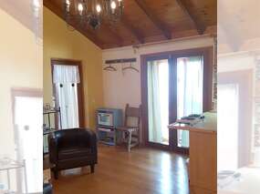 Die Ferienwohnung schafft eine gemütliche Atmosphäre durch die schönen Holzdecken und der passenden Einrichtung. Die zum Teil aus Holz und zum Teil gefließten Böden fügen sich perfekt in das harmonische Gesamtbild der Ferienwohnung.