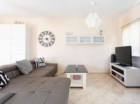 Sowohl das Wohnzimmer als auch die Küche sind modern und komfortabel eingerichtet. Der Esstisch steht am Fenster in einer schönen Nische, Internet ist über W-Lan per Glasfaser vorhanden und das große Sofa lädt zum relaxen ein. Komplettausstattung auch in der Küche, unter anderem mit einen 4 Platten-Herd, Backofen, großer Kühlschrank mit Gefrierabteilung, Mikrowelle sowie auch einer Geschirrspülmaschine. Toaster, Wasserkocher und Kaffeemaschine, Geschirr, etc. sind ebenfalls vorhanden.