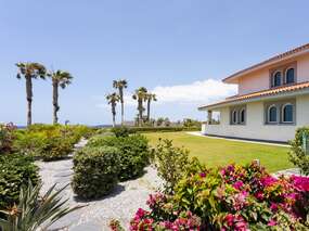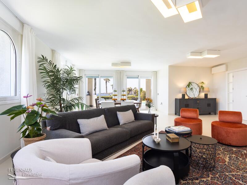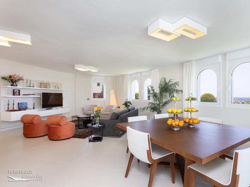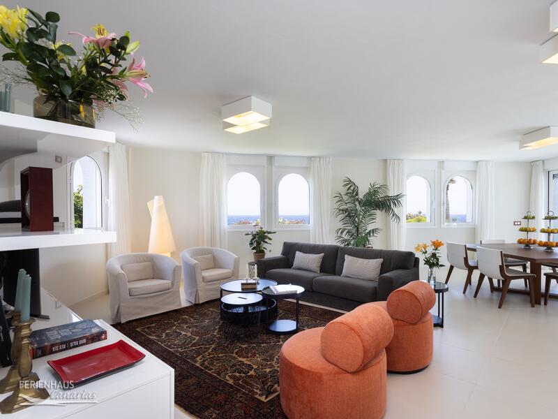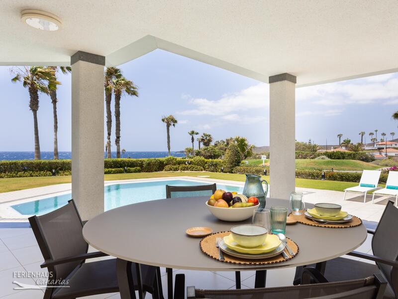 Eine Oase der Eleganz und Ruhe, Luxus und Komfort - all das finden Sie in diesem harmonisch gestaltetem Ferienhaus mit Pool, Garten, Terrassen und Meerblick am Amarilla Golf an der Süd-Küste von Teneriffa.