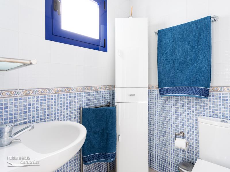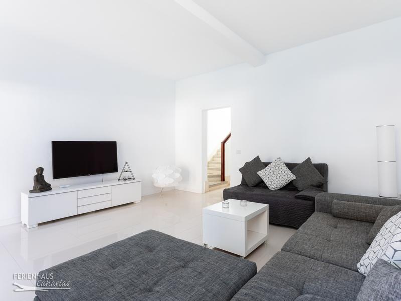 In der unteren Etage befindet sich ein großer Wohnbereich, mit einem Sofa, welches sich zu einem Schlafsofa (140 x 190) für 2 Personen umbauen lässt. Ebenso vorhanden ist ein SMART TV mit deutschen Sendern und kostenloses Internet über WLAN. Von dem Wohnbereich haben Sie Zugang zur möblierten Terrasse mit wunderbaren Blick auf das Meer und das Anagagebirge.