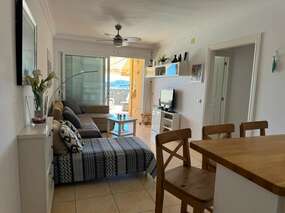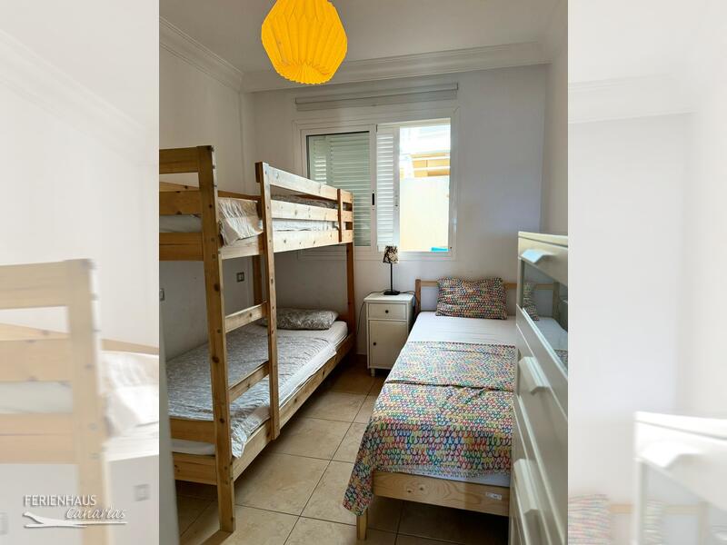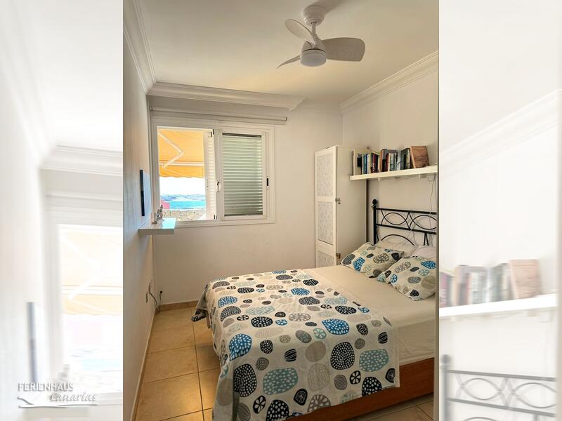 Die Ferienwohnung liegt inmitten einer sehr ruhigen und gepflegten Anlage, die über einen großzügigen Gemeinschaftspool verfügt. Unverkennbar ist das terrassenförmige Erscheinungsbild. Der Blick von Ihrer Terrasse ist fantastisch. Ausgestattet mit 2 Schlafzimmer von denen eines über ein Doppelbett und das andere über 1 Einzelbett und ein Etagenbett verfügt, bietet diese Ferienwohnung Platz für bis zu 5 Personen. Im Wohnzimmer haben sie ein bequemes Sofa, deutschem Fernsehen und W-Lan. Die offene Küche ist feriengerecht eingerichtet. Von der Kaffeemaschine bis hin zum Toaster sind auch alle zusätzlich notwendigen Küchenutensilien vorhanden.