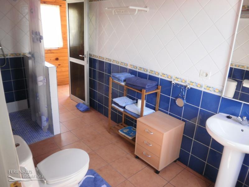 Die Ferienwohnung findet sich in der oberen Etage eines Hauses mit zwei Wohneinheiten, welches sich auf der grandiosen Finca befindet. Der Wohnbereich mit mit gemütlichen Sitzgelegenheiten und einer Fernsehwand ausgestattet. In der Küche finden Sie einen Kühlschrank, einen Herd, einen kleinen Backofen sowie Kleingeräte und einen Esstisch mit Stühlen. Im Schlafzimmer finden Sie zwei Einzelbetten, die zusammengestellt wurden und daran grenzt das Badezimmer mit ebenerdiger Dusche an.