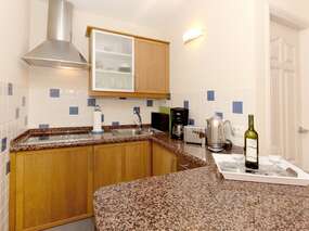 Die modern eingerichtete FeWo ist für 2 Personen und verfügt über einen Wohnraum mit einem Schlafsofa, offener Küchenzeile, Sofa und SAT-TV (deutsche Programme. Die kleine Küchenzeile beinhaltet 4-Platten-Ceranfeld, Kühlschrank, Kaffeemaschine etc... Das Schlafzimmer ist mit Doppelbett (2x2m) und das Bad mit Dusche, Waschtisch, WC, Bidet, Bade- und Handtüchern sowie Bademänteln.
