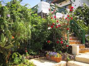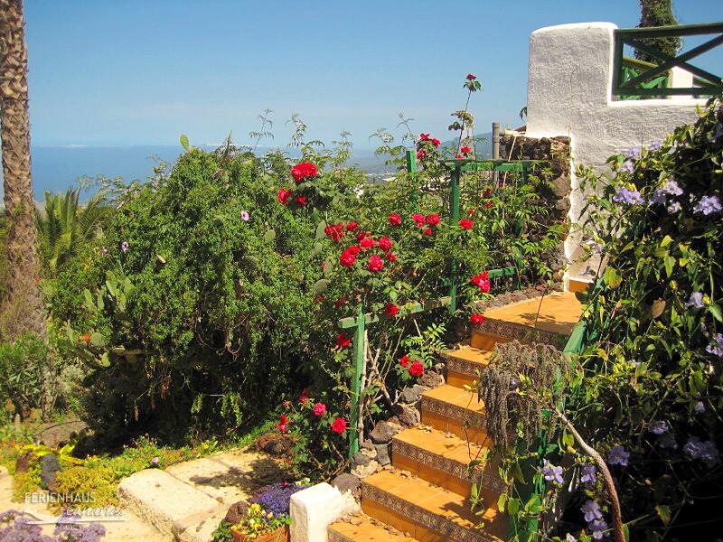 Die Fincaferienwohnung befindet sich auf einem großen Gartengelände mit Grillplatz sowie drei kleinen Teichen. Auf dem Grundstück liegen außerdem zwei Ferienwohnungen, ein Ferienhaus und das Haus des Vermierter. Sie gelangen vom Hofparkplatz aus über einen Gartenweg mit 25 Stufen zu der Wohnung.
