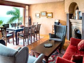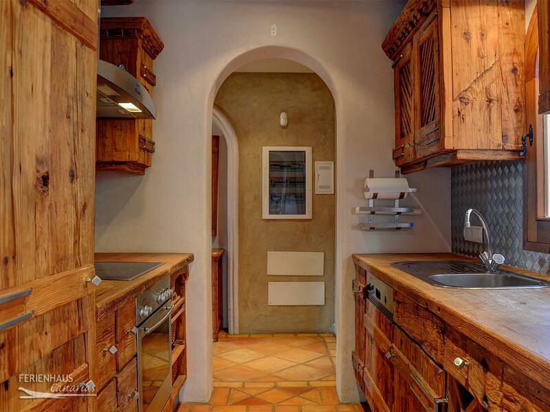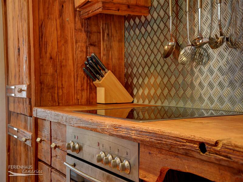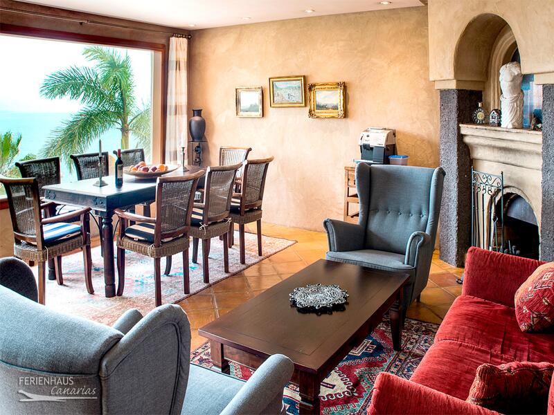 Die Luxusvilla verfügt über Platz für 6 Personen und besticht durch ihr exklusives als auch gemütliches Ambiente. Der große Wohnbereich verfügt über einen Esstisch, einen offenen Kamin, für die etwas kälteren Tage und Panoramafenster mit Blick auf die gesamte Nordküste. Angrenzend befindet sich die Antikholzküche.