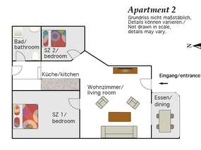 1 Apartment mit einem Schlafzimmer und 1 weiteres Apartment mit 2 Schlafzimmern.