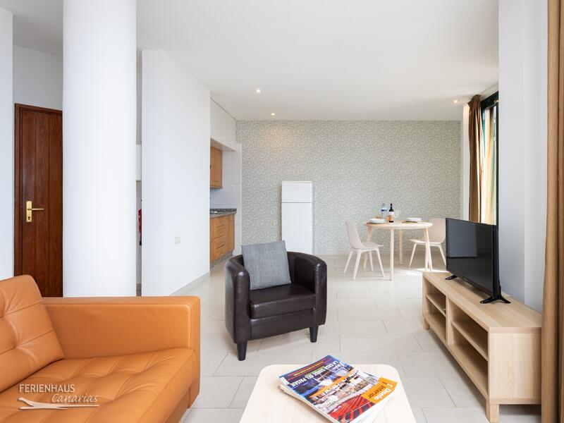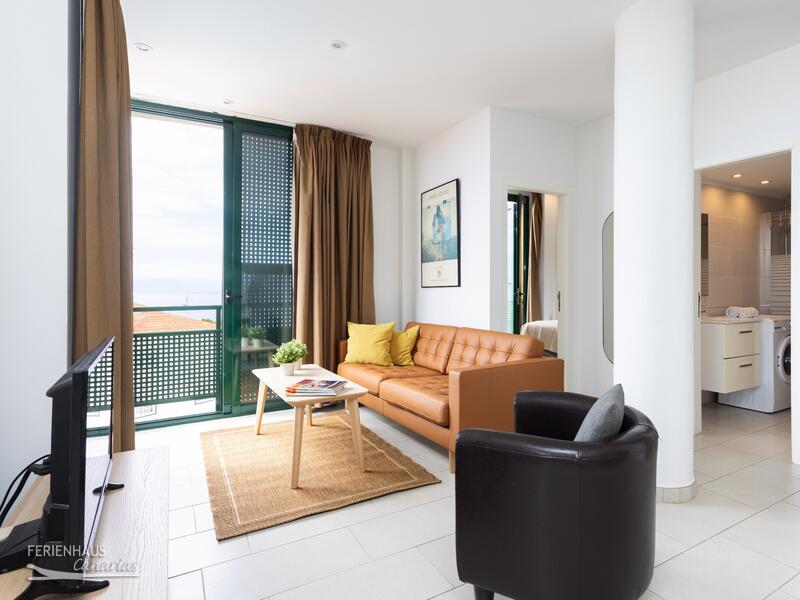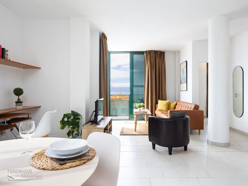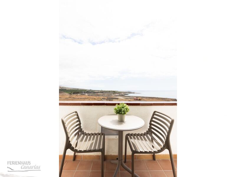 Der geräumige Balkon bietet eine malerische Aussicht auf den Atlantik, die Insel Gomera und die beeindruckenden Steilklippen „Acantilados de Los Gigantes“. Er ist ausgestattet mit Balkonmöbeln und Sonnenliegen, ideal um die spektakuläre Aussicht zu genießen. Kostenloses Internet und Zugang zu deutschen Fernsehprogrammen runden das Angebot dieser Ferienwohnung ab