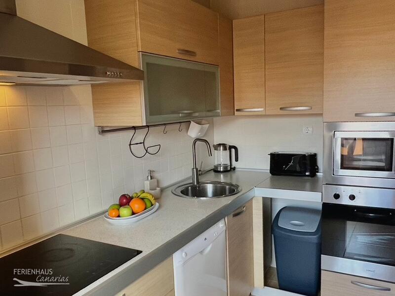 Die Küche ist vom Wohnbereich getrennt und unter anderem mit einem Cerankochfeld, Kühlschrank mit Gefrierfach, großem Backofen, Mikrowelle, Geschirrspüler, Wasserkocher, Toaster, Kapselkaffeemaschine, etc... gut ausgestattet.