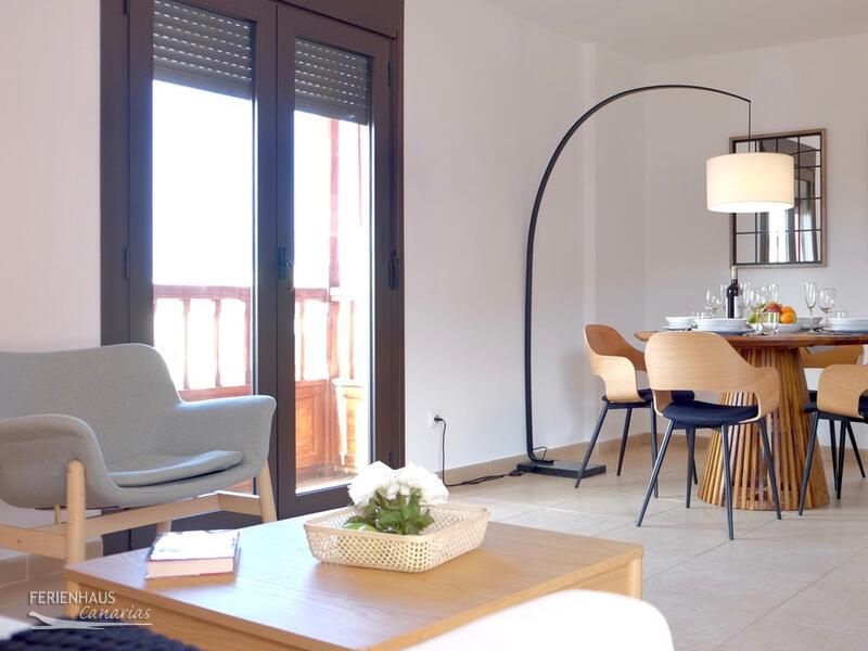 Die FeWo Palm Mar ist etwa 108 m² groß. Es gibt einen gemütlichen Wohn-Essbereich inkl. Sat-TV, und Esstisch für bis zu 4 Personen. Zudem Klimaanlage und Zugang zur privaten Terrasse die mit Gartenmöbeln zum Entspannen einlädt.