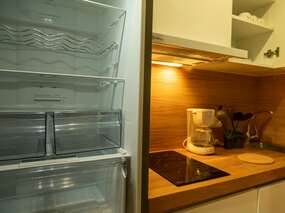 Die 60 m² große Ferienwohnung befindet sich in der 15. Etage (Lift vorhanden) und ist für bis zu 4 Personen ausgelegt. Der Wohnbereich besteht aus einer Singleküche und einem kleinen Sitzbereich. Die Kittchenette ist offen im Wohnraum integriert und mit einer Grundausstattung ausgestattet - und falls Ihnen etwas fehlt, wird es Ihnen zur Verfügung gestellt.