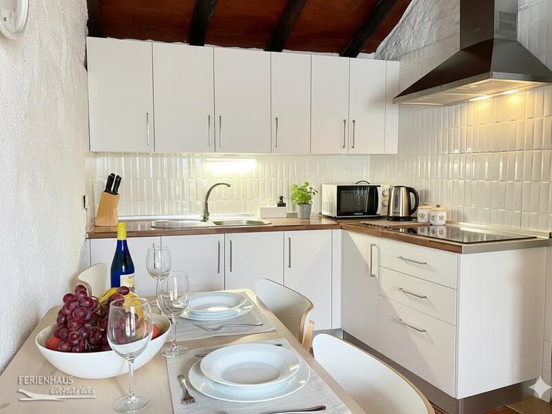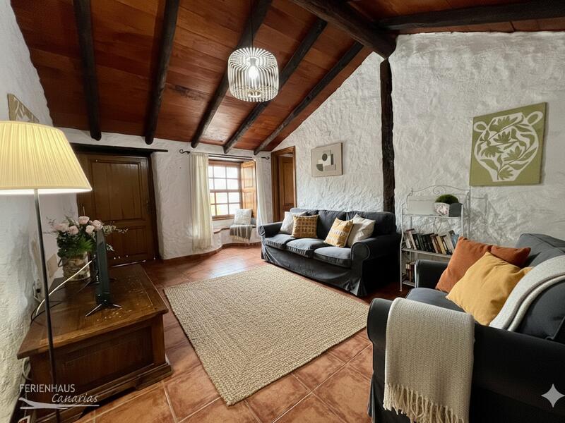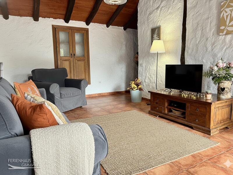 Das Ferienhaus im kanarischen Stil ist vollständig möbliert und ausgestattet, um dem Gast den höchstmöglichen Komfort im Urlaub zu bieten. Im Haus gibt es einen Wohnraum mit SAT-TV (internationale Programme darunter auch deutsche), eine Küche mit Essbereich, u. a. mit Ceranfeld, Kühlschrank, Mikrowelle etc., 2 Schlafzimmer, eines mit Doppelbett, das andere mit 2 Einzelbetten und 1 Duschbad. Die Waschmaschine befindet sich in einem separaten Raum.