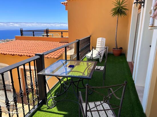 Von den hier beschriebenen, günstigen Superior-Ferienwohnungen aus sieht man das schöne Tal bei Icod und das Meer. Die private Terrasse mit der gemütlichen Sitzgruppe lädt zum Entspannen ein.