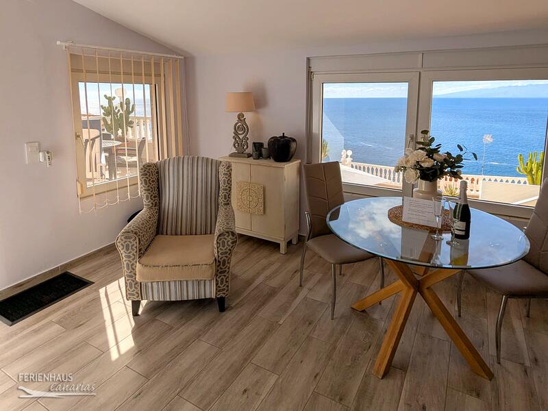 Nach skeptischer Anfahrt durch Puerto de Santiago öffnet sich die Tür zu einem kleinen Paradies. Nach herzlichem Empfang durch die gute Seele des Hauses Alena haben wir erst mal den herrlichen Blick übers Meer nach La Gomera genossen, der sich uns sowohl von der eigenen Terrasse, als auch vom Wohnzimmer bot.