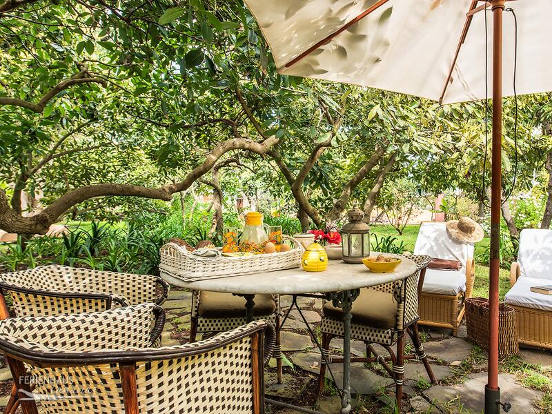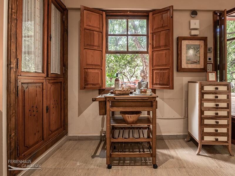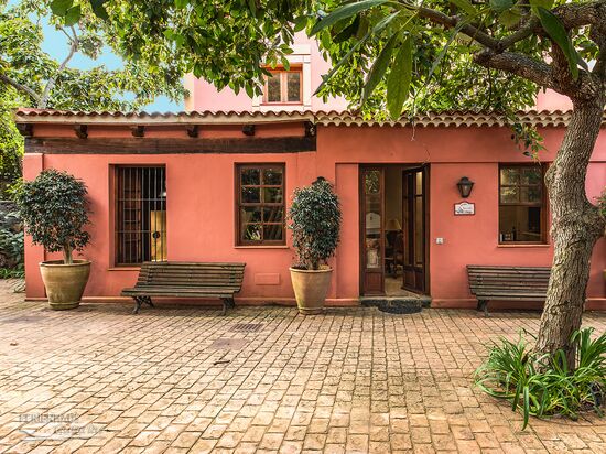 Umgeben von Avocados, Orangenbäumen und einem Weinberg auf dem noch heute aus den Reben eigener Wein hergestellt wird, liegt das ehemaligem L-förmigen Herrenhaus in Tacaronte.