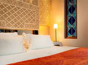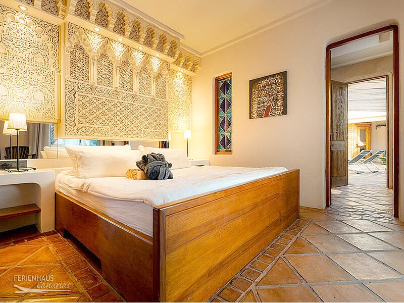 Die Küche verfügt über ein modernes Equipment wie z.B. Kühlschrank, Elektroherd, Backofen, Geschirrspüler, Kaffeeautomat, Toaster, Nespresso Kaffeemaschine etc.... und das Schlafzimmer über ein Doppelbett (Swiss-Flex-Gesundheitsschlafsystem) und einen zweiten Fernsehanschluss. Die marokkanischen Schnitzarbeiten runden das gehobene Ambiente im Schlafzimmer ab. Vom Schlafzimmer gelangen Sie direkt zum eigenen Wasserfall mit Biotop - ein lauschiges Plätzchen das zum Träumen und Verweilen einlädt. Des Weiteren gibt es ein schönes Badezimmer mit Dusche, Handtüchern, Bademantel und Haartrockner und direktem Zugang zum Wellnessbereich.